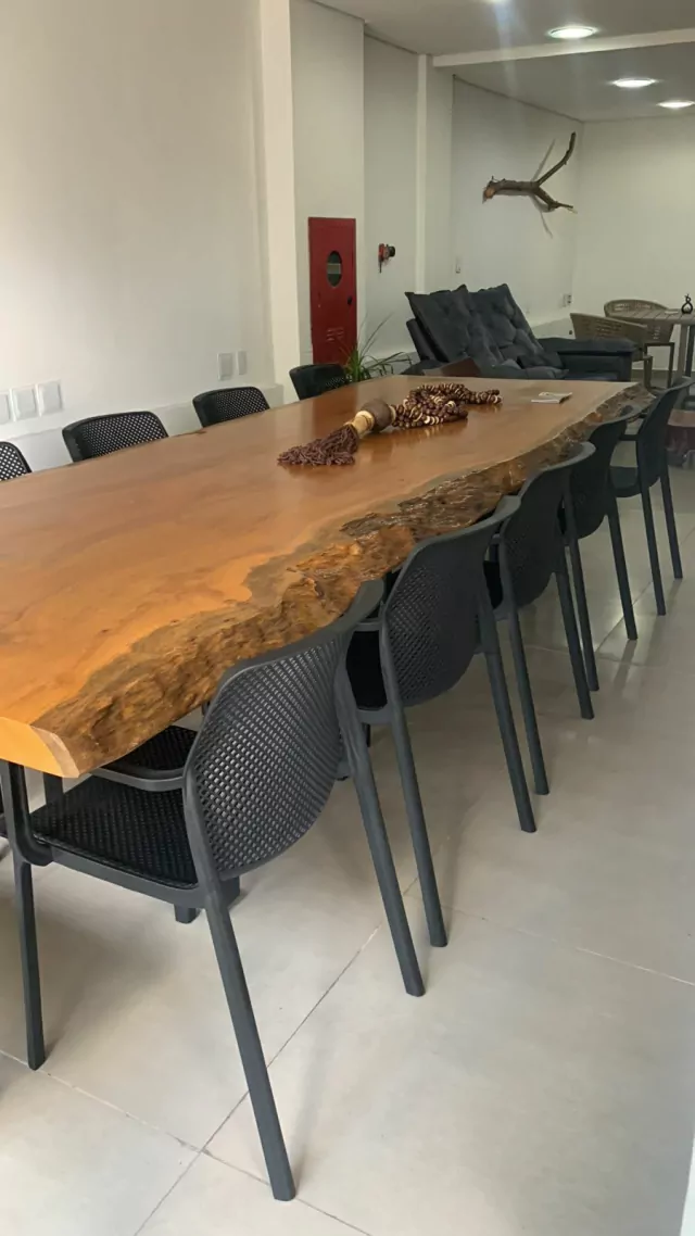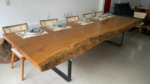Borda orgânica natural da peça. Pode ser utilizada com o casco da arvore para cima (Tampo normal) ou para baixo (Tampo invertido).